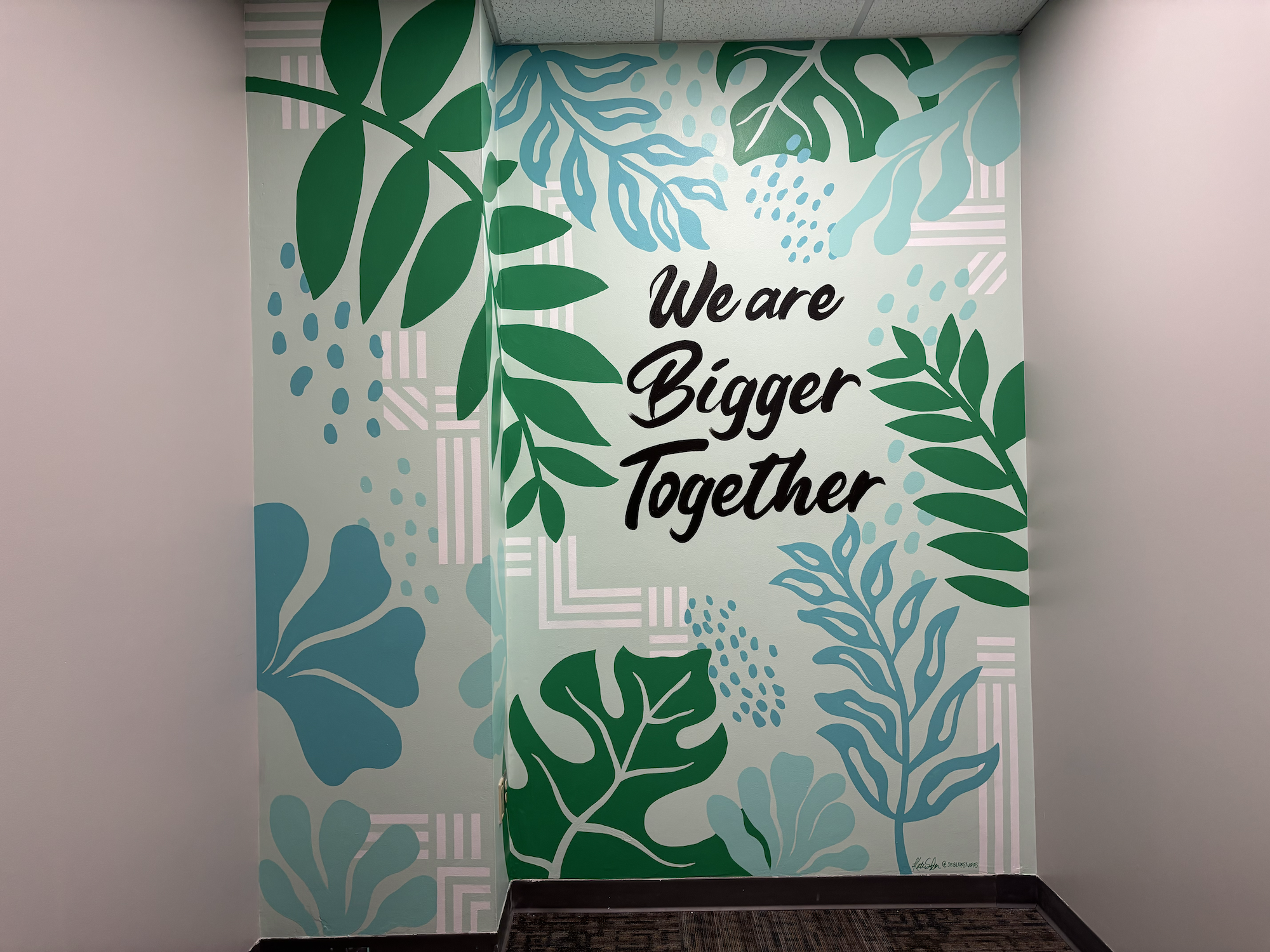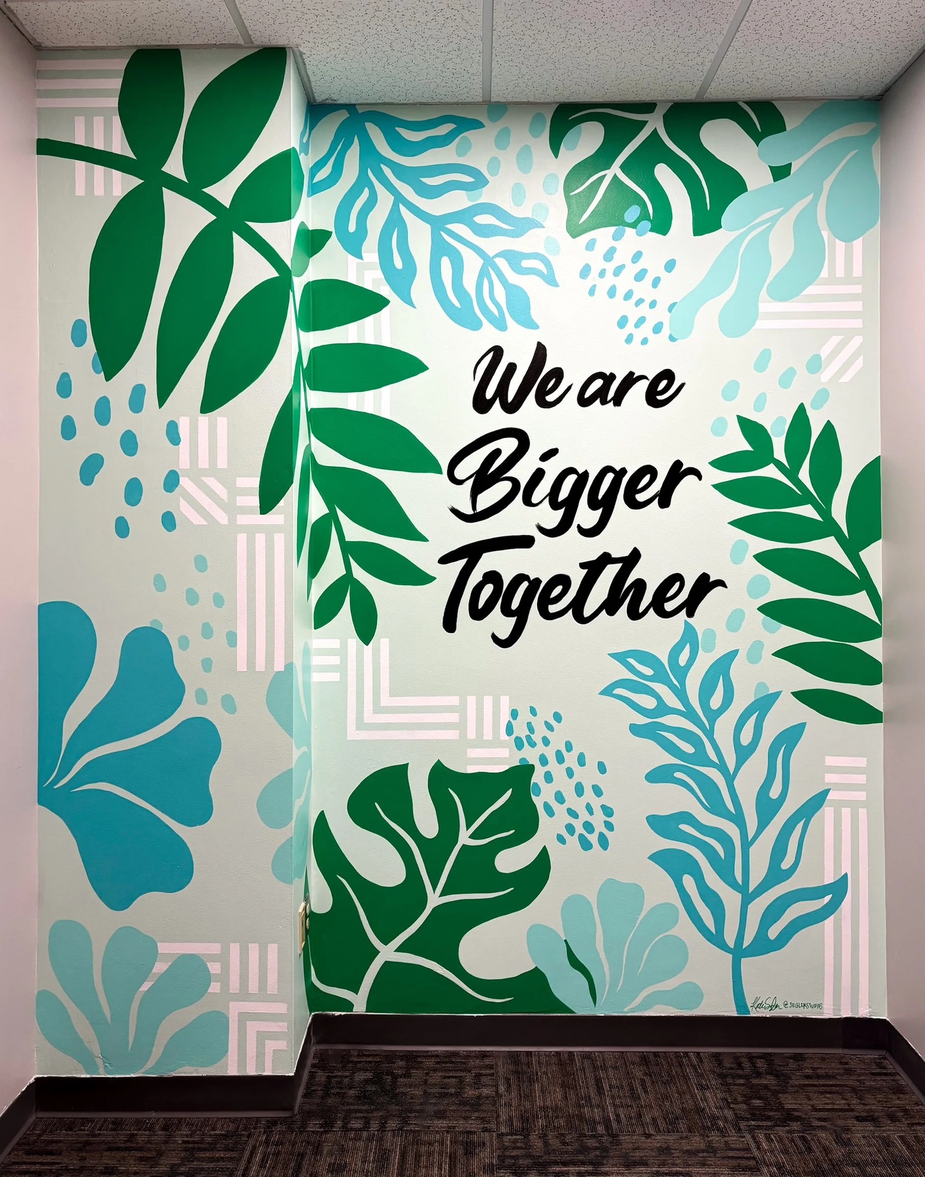 This vibrant mural was created for Big Brothers Big Sisters of Sourthern Minnesota (BBBS). BBBS is an amazing organization that I not only had the opportunity to paint a mural for, but have volunteered with as well! It was my honor to create a piece that reflected the welcoming brightness they project into the community.